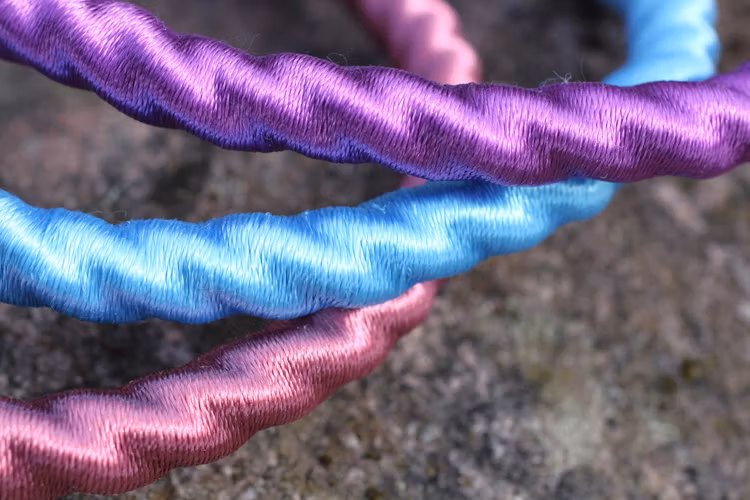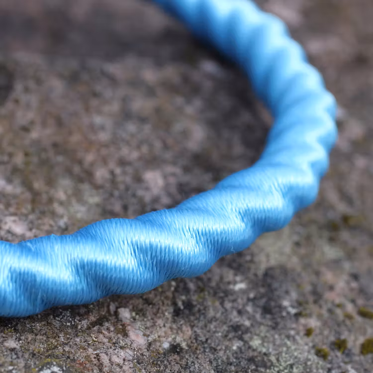 Handgjort rephalsband tillverkade av repstumpar och nylontråd som annars hade kastats.