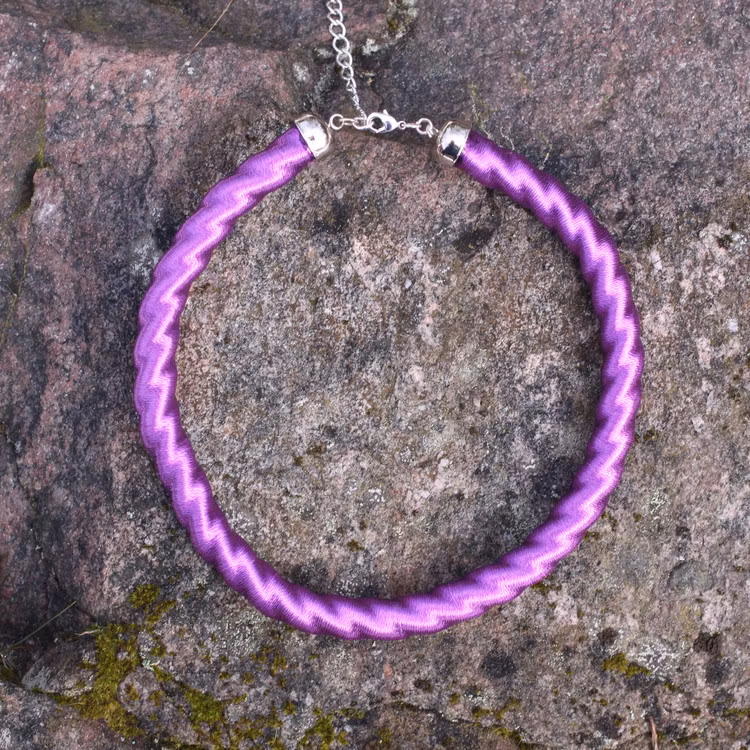 Handgjort rephalsband tillverkade av repstumpar och nylontråd som annars hade kastats.