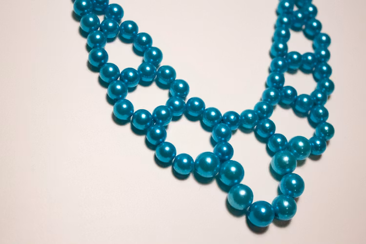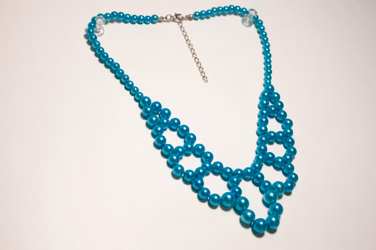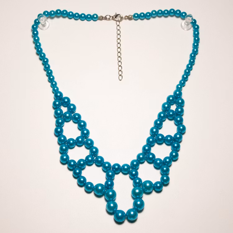 Halsband som fick nytt liv och ny form! Pärlorna är av plast i en turkos färg.