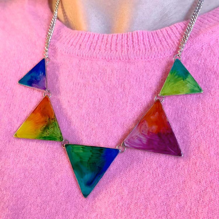 Halsband med fem vimplar som fått sig en omgång av Sharpie-pennor för att livas upp!